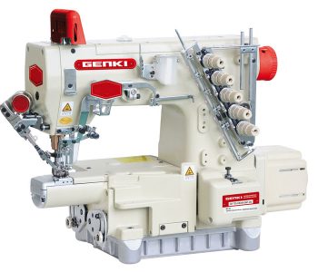 The small cylinder design,the circumference is 182mm,seams small-size tubular goods more conveniently.“Regulating Lever Type”differential feeding mechanism offers you a full differential feeding. Adjustable hemming folder changes the hemming function in easily.Applicable to covering seams on all kinds of knit goods collarsand cuff,hemming for small-size cuff of trousers and covering & hemming for the wear of children & toddler.