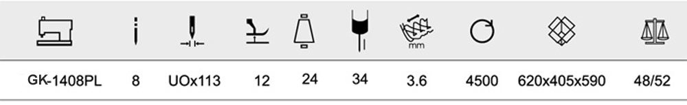 GK-1400 series are a flatbed, multi needles, double chainstitch machine