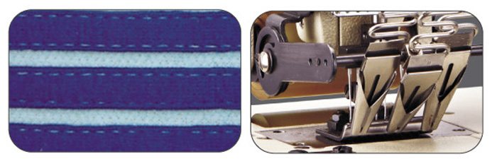 These series are multi-purpose machine for attaching elastic, attaching waistb and sewing the front of shirts, attaching line tapes, smocking and shirring etc… Which are ideal for underwear, sportswear, lady’s clothes, interior decorated goods (curtains, table-clothes etc.).