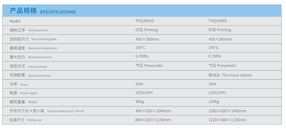 Máy ép nhãn (1 hoặc 2 mâm, khổ 450*360mm) SKU: TKQ-3645S1/S2 Warranty: 12 months Price: Contact Download: Description Application Video Photo TKQ-3645S1/S2 AUTOMATIC (PNEUMATIC) HEAT TRANSFER MACHINE Others Products GK-8450 Máy 2 kim di động điện tử Price: Contact GK-8420 Máy 2 kim cố định điện tử Price: Contact GK-787-N600 Máy viền túm xén trái điện tử Price: Contact GK-787-R600 Máy viền túm xén phải điện tử Price: Contact GK-781F . Máy thùa khuy áo Price: Contact GK-288E2. Máy 1 kim điện tử Price: Contact GT-900D-5H . Máy vắt sổ, motor đồng trục Price: Contact GT-900D-4 . Máy vắt sổ, motor đồng trục Price: Contact GK-1404P-D. Máy 4 kim móc xích Price: Contact